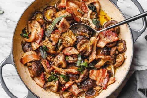 دجاج المشروم واللحم المقدد: لوحة ريفية في مقلاة واحدة