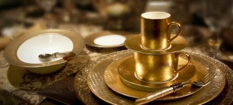 أطقم الطعام المطلية بالذهب وكيفية العناية ببريقها
