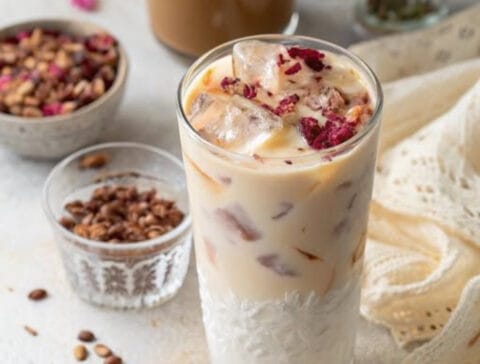 طريقة سهلة لتحضير آيس لاتيه بالورد والهيل في المنزل