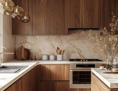 تصميم مطبخ بجمال خشب الجوز الكلاسيكي سيحوّل بيتك إلى مساحة فخمة