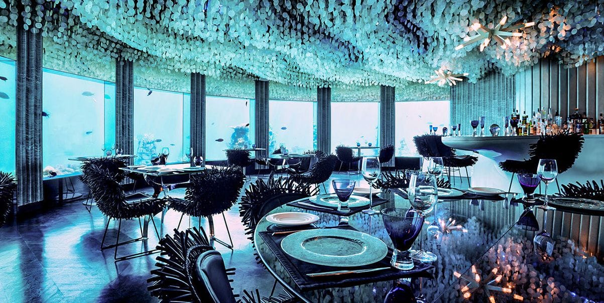 قع هذا المطعم الذي أقيم تحت الماء في جزر المالديف على عمق خمسة أمتار تحت سطح المياه الصافية في الجزر التي تتميز بطبيعتها الخلابة. افتتح المطعم في عام 2005 في أحد المنتجعات في الجزيرة السياحية. كان آنذاك أول مطعم يقام تحت سطح البحر، إلا أن هذه التجربة باتت متاحة في أماكن أخرى في العالم منها دبي التي توفر تجربة مماثلة في فندق أتلنتس حيث يتميز بموقع رائع. ويعتبر هذا المطعم في دبي من أبرز المطاعم الراقية التي تقدم ألذ المأكولات البحرية، إضافة إلى كونه وجهة مثالية للمناسبات الرومانسية وللاحتفالات أثناء مشاهدة روعة الحياة البحرية المحيطة حيث يتوافر 65 ألف نوعاً من الأسماك. كما تتوافر تجربة فريدة مماثلة في دبي في برج العرب حيث تبدأ المغامرة لرواد المطعم في الغواصة التي تنقلهم إلى الصالة التي أقيمت داخل حوض ضخم للأسماك.