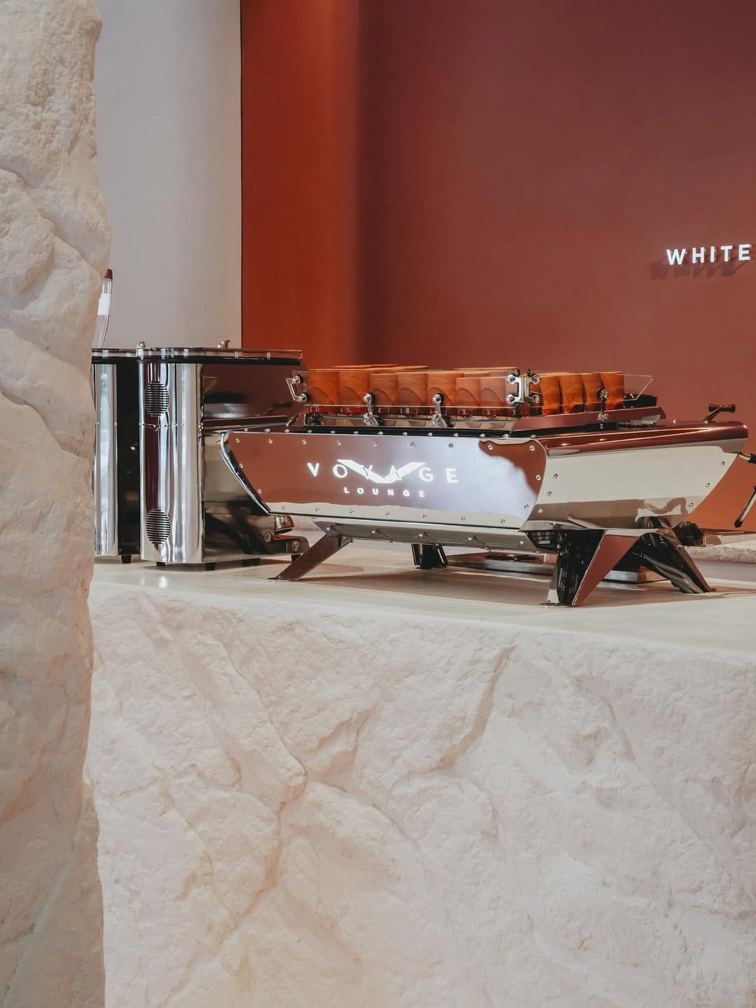 يقدّم Voyage Lounge لمسة إماراتية واضحة عبر أجواء فاخرة تمتدّ من الديكور إلى قائمة المشروبات. يركّز المكان على خلق تجربة مريحة تنقل الضيفة إلى عالمٍ مستوحى من ثقافة الضيافة الخليجية، حيث الشاي والقهوة يُحضَّران بطريقة تبرز النكهات من دون تعقيد.