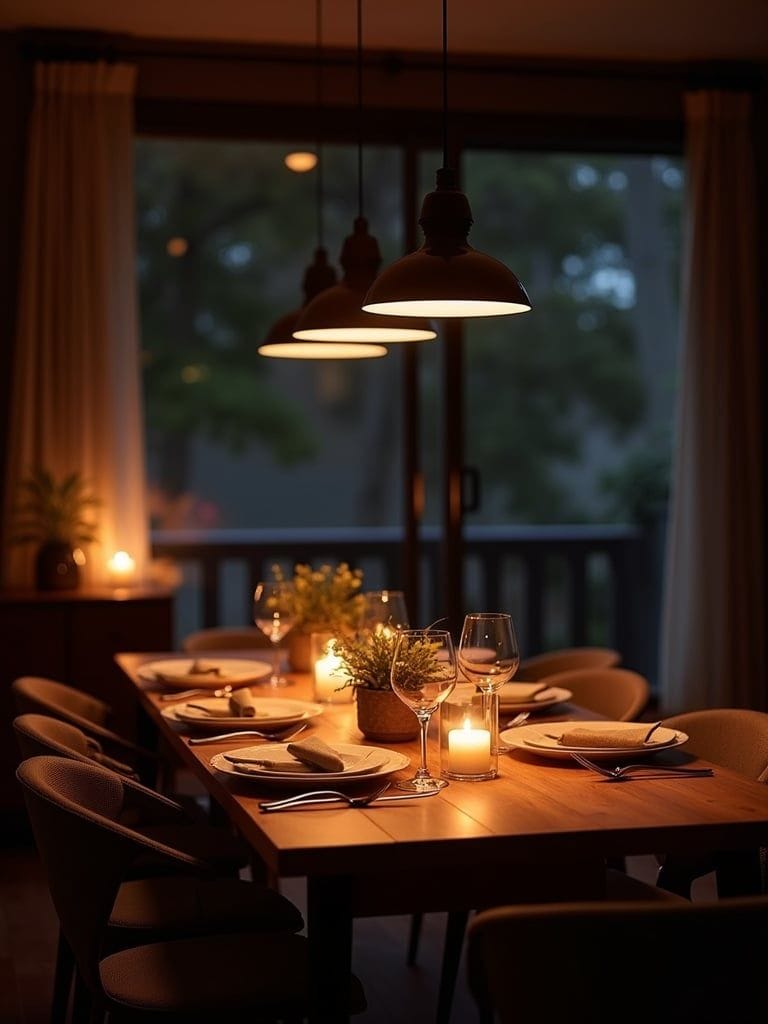 في الخريف تقلُّ ساعات ضوء النهار، فتتحول الحاجة إلى الإضاءة من عنصر وظيفي إلى عنصر جمالي ونفسي. يُفضَّل اختيار مصادر ضوء دافئة تخلّف توهجًا ذهبيًا يُقارب ألوان الموسم. توزيع الإضاءة ينبغي أن يكون طبقيًا: إضاءة عامة ناعمة، وأضواء محلية مركّزة على مناطق الجلوس والطعام، وإضاءات خفيفة تُبرز عناصر ديكورية مختارة.