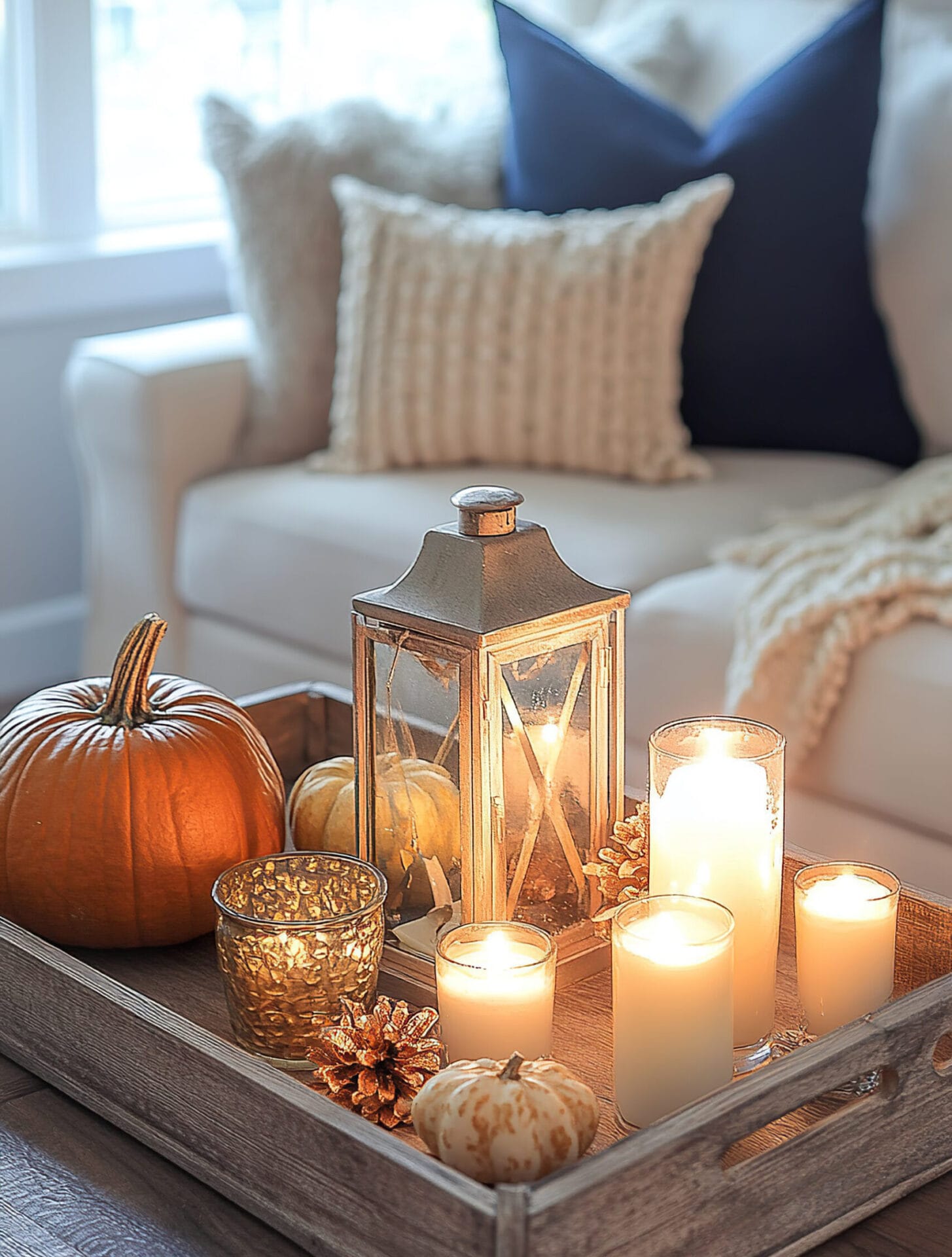الإضاءة هي العامل الأهم في خلق الجو الخريفي: مصابيح ذات إضاءة دافئة، شموع معتمدة في حوامل آمنة، وسلاسل أضواء رقيقة لتحديد الزوايا. تجنبي الإضاءة القوية المباشرة في أماكن الجلوس، واستخدمي مصادر متعدّدة لتعطي عمقاً ومرونة؛ مصباح أرضي للقراءة، مصابيح طاولة للسكينة، وشموع معطرة برائحة القرفة أو الفانيليا لحميمية مميزة. الإضاءة المدروسة تحوّل المساحة البصرية إلى حضن دافئ يرحّب بالضيف .