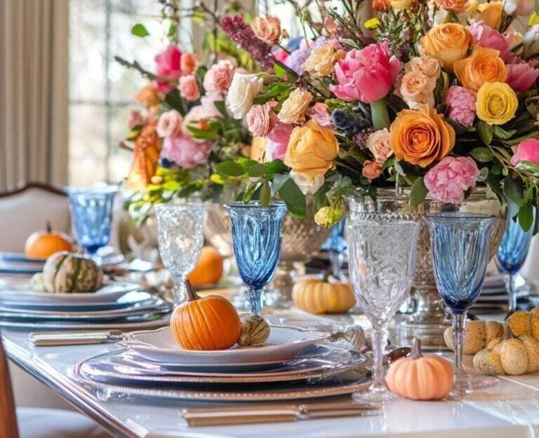 الزهور الطبيعية تُضفي حياة على الطاولة، خاصة إذا تم اختيارها بعناية لتتناسب مع الموسم أو نمط الديكور. أما الإضاءة، فهي سرّ الأناقة الصامتة: الشموع الطويلة أو الإضاءة الخافتة تُخلق جوًا حميميًا يُشجّع على الحوار ويُضفي دفئًا على المكان.