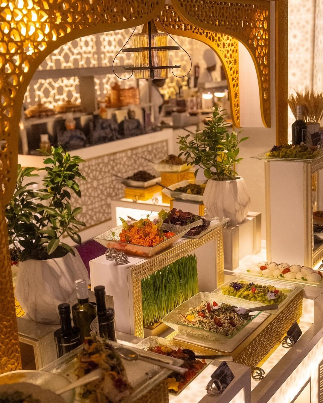 يتربع اسم خيمة أساطير في منتجع “أتلانتس النخلة” على عرش الوجهات التي توفر إفطار رمضاني لا يُنسى بفضل فخامتها الأسطورية وإطلالاتها الخلابة على نخلة جميرا. يقدّم الطهاة هنا تشكيلةً واسعةً من الأطباق التي تلبّي كافة الأذواق، حيث تبرز محطات الطهي المباشرة لتقديم “قوزي” اللحم المطهو ببطء والمشاوي العربية الأصيلة. يمنح الديكور العربي الحديث، الممزوج بلمسات الضيافة الشرقية، شعورًا بالدفء والترحاب يتناسب تمامًا مع قدسية الشهر، وتكتمل التجربة مع أنغام الموسيقى الحية التي تضفي جوًّا من البهجة والهدوء.