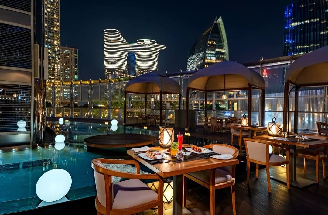 يستقبل “أرماني بافيليون” الواقع في برج خليفة ضيوفه بإطلالاتٍ أيقونية على “نافورة دبي”، مقدّمًا إفطارًا يمتزج فيه الفن المعماري مع فنون الطهي الراقية. تتنوع الأطباق لتشمل مختاراتٍ من المطبخ العالمي، مع التركيز على النكهات العربية التي تُقدّم بأسلوبٍ عصري يتسم بالبساطة والأناقة التي تشتهر بها علامة أرماني. تمنح الجلسات الخارجية في الهواء الطلق فرصةً للاستمتاع بنسمات المساء العليلة، بينما تتلألأ أضواء المدينة في الخلفية، مما يخلق مشهدًا سينمائيًا يرافق كل لقمة من وجبات الإفطار الشهية والمبتكرة.