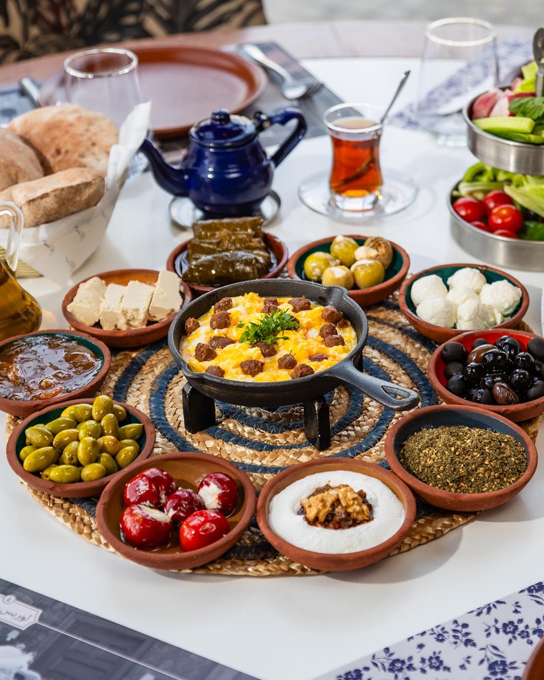يقدّم المطعم قائمة غنية تشمل المناقيش بأنواعها، الكبة النية، والورق عنب المحشو بدقة، إضافة إلى الحلويات اللبنانية التي تُختتم بها الوجبة على نغمة حلوة من الحنين. ومع كلّ طبق يُقدَّم، تُترجم عبارة “أهلًا وسهلًا” بصدق، لتشعري أنّ كرم الضيافة جزء من النكهة نفسها.