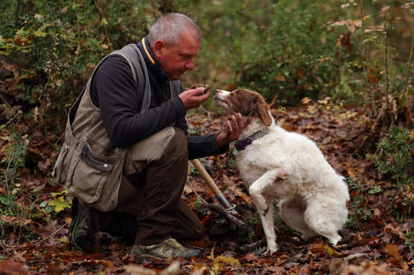 تقليديًا، استخدمت بعض المناطق الخنزير للعثور على الكمأة، إذ تجذب رائحتها بعض الخنازير الأنثوية الطبيعية، لكن الخنازير تميل إلى أكل الكمأة عند العثور عليها، وهذا يعرّض المحصول للتلف. اليوم تُفضّل غالبية جامعي الكمأة استخدام كلاب مُدَرَّبة، إذ تستطيع تحديد الموضع بدقّة وتُقلّل من الاضطراب في التربة، ما يحافظ على النظام الإيكولوجي لمكان النمو ويضمن جمع الثمار الناضجة فقط. استعمال الكلاب أصبح معيارًا بيئيًا عمليًا وأكثر رفقًا بالغابة.