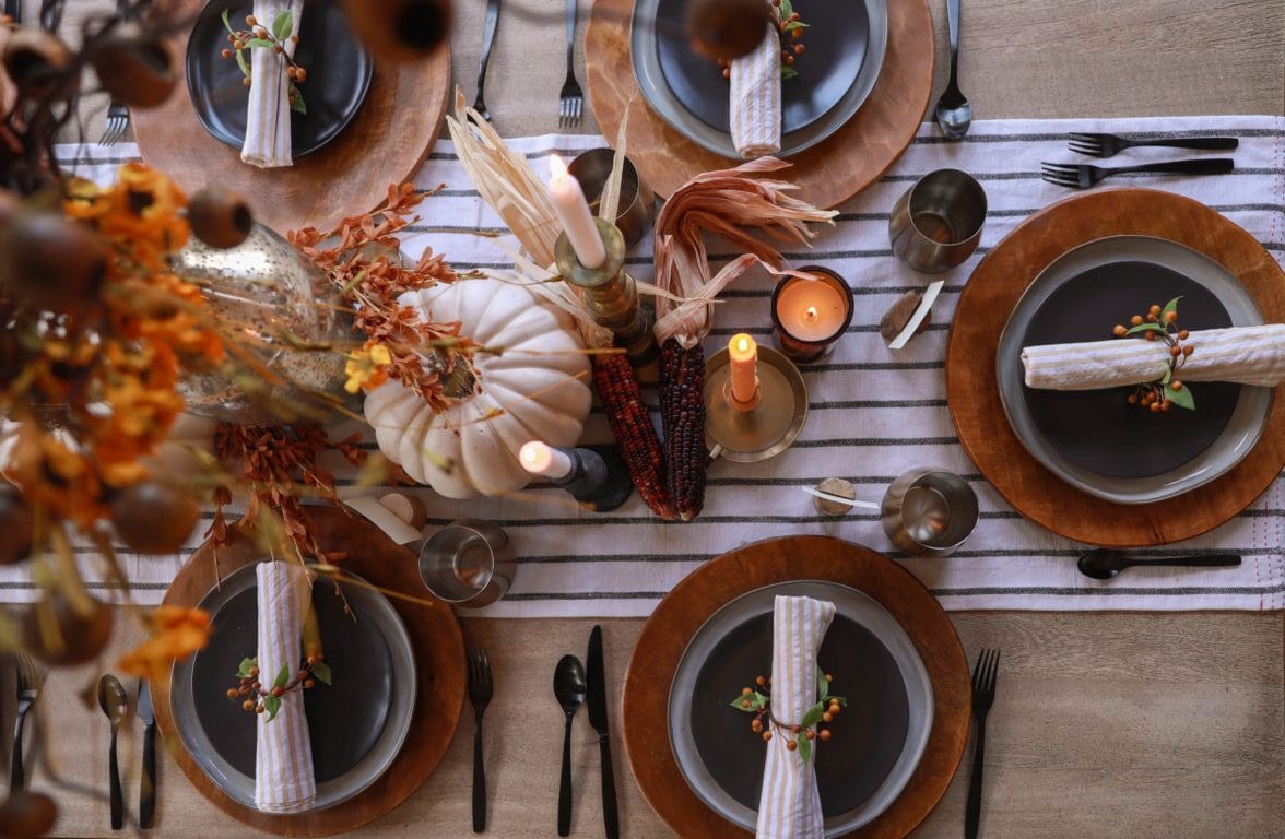 ابدئي ببناء خلفية طبيعية متوافقة مع الموسم؛ استخدمي مفارش بألوان ترابية أو بطانيات خفيفة تُسقط على الطاولة كقماش طبيعي. ضعي أوراقًا يابسة مختارة، أغصانًا رقيقة، أو أكواز شجرة صغيرة لتوزيع عنصر الخريف على الطاولة بشكل سلسّ. يمكن توظيف الإضاءة الدافئة (شموع أو مصابيح صغيرة) لتأجيج الأجواء، فتتحول الظلال إلى رقصات رقيقة على سطح الطاولة.