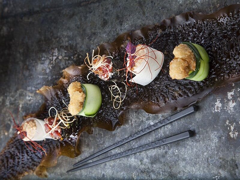 تناول غونكانماكي في مطعم فاخر لا يُشبه تناول السوشي في أي مكان آخر. الطاهي، الذي يقف خلف المنضدة الخشبية المصقولة، يُحضّر القطعة أمامك مباشرة، مستخدمًا أدواته كأنها امتداد ليد فنان. كل حركة محسوبة، وكل مكون يُضاف في اللحظة المناسبة، لتشعر أن ما يُقدَّم لك ليس مجرد طعام، بل لحظة من الطقوس اليابانية التي تُقدّس الجمال في التفاصيل.