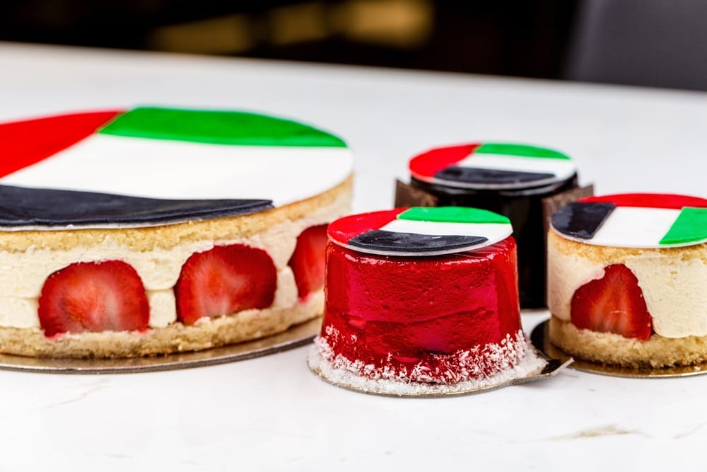 في ختام الوليمة، لا تأتي الحلويات كإضافة جانبية، بل تُصاغ بعناية لتجسّد البعد العاطفي للحدث. تتزين بألوان مستوحاة من الهوية الوطنية، وتُقدَّم بأشكال فنية تحاكي رموزاً ثقافية وإشارات بصرية للاتحاد. هذا الختام الحلو لا يضيف فقط متعة مذاقية، بل يرسّخ في ذاكرة الضيوف معنى الاحتفال، وكأنه توقيعٌ فنيٌّ يُختَم به المشهد.