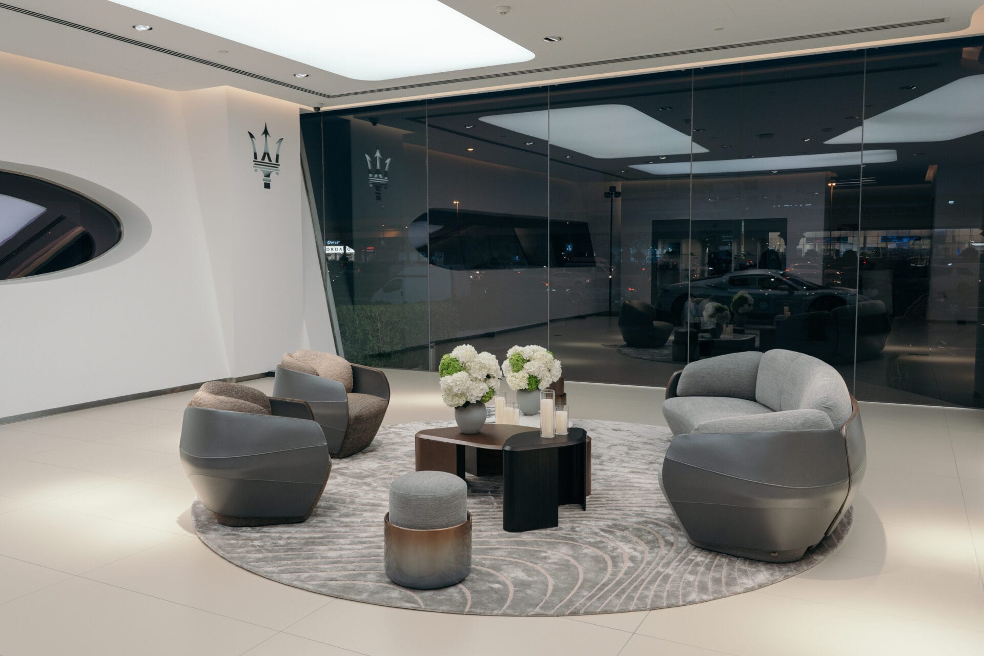 داخل صالة عرض Maserati التابعة لـ Al Tayer Motors، الأكبر من نوعها عالميًا، عُرضت مجموعة Giorgetti Maserati Edition من الأثاث، إلى جانب سيارة Grecale Maserati Giorgetti Edition الفريدة. المكان لم يكن مجرد منصة عرض، بل مسرحًا لتجربة حسية متكاملة، حيث تُحاكي التصاميم حركة الرياح، وتستدعي رمزية البحر، وتُجسّد فلسفة الأداء من خلال الأشكال، المواد، والتفاصيل. ثلاثة مشاهد داخلية تم تنسيقها بعناية، كل منها يُجسّد جانبًا من شخصية Maserati: القوة، الانسيابية، والهدوء. من أريكة Nereide إلى طاولة Ploto المغناطيسية، ومن منحوتة Seidon الجلدية إلى كرسي Lorelei الذي يُعانق الجالس، كل قطعة تُحاكي الأسطورة، وتُعيد صياغة الفخامة كحالة شعورية.