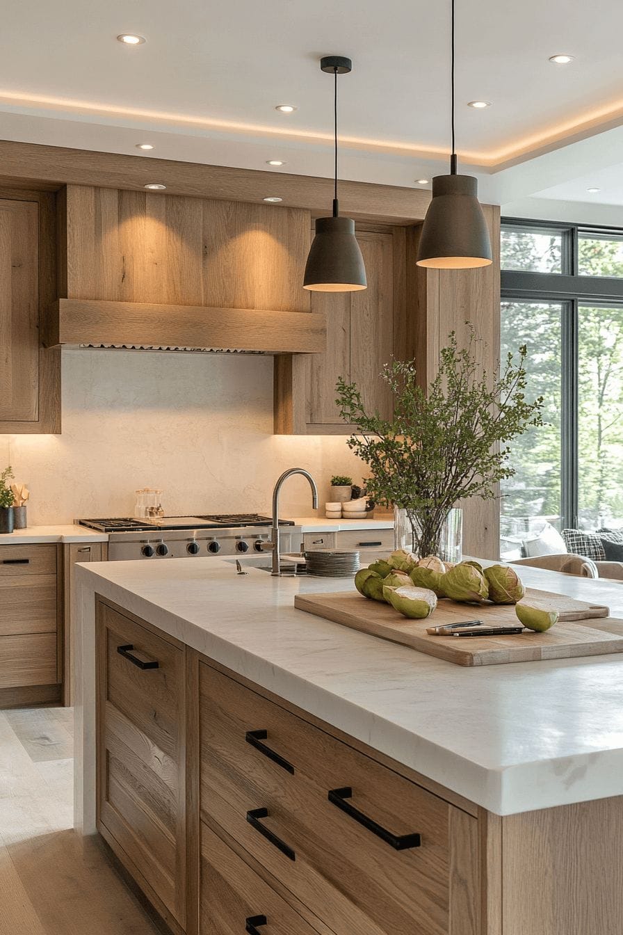 يتيح التعامل مع خشب البلوط مرونة واسعة للمصممين في ابتكار أشكال متنوعة تلائم المساحات المختلفة. يتقبل هذا المعدن الطبيعي النحت والزخرفة الدقيقة في المطابخ الريفية، كما يبرز بجماله الصافي في التصاميم المينيمالية الحديثة التي تعتمد على الخطوط الواضحة والبسيطة. يسهل دمج خشب البلوط مع الرخام أو المعادن مثل النحاس والكروم، لتقديم مزيج متجانس يجمع بين كلاسيكية المادة وحداثة المظهر، محقّقًا توازنًا بصريًا مريحًا للأبصار.