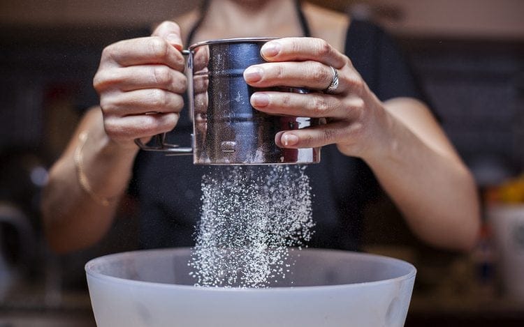 قد تبدو عملية نخل الدقيق خطوة ثانوية، لكنها في الحقيقة من أسرار القوام المثالي في الحلويات. فالمناخل تساعد على تفكيك التكتلات وتهوية الدقيق قبل إضافته إلى الخليط.