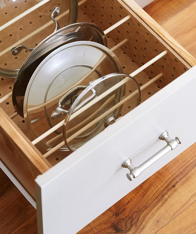 تمثل أغطية القدور التحدي الأكبر في التنظيم نظراً لأشكالها التي تأخذ مساحة كبيرة دون فائدة حقيقية عند التخزين التقليدي. الحل يكمن في استخدام منظمات الأغطية المخصصة التي توضع على الأبواب أو داخل الأدراج العميقة لترتيبها بشكل متسلسل حسب الحجم. ومن جهة أخرى، يجب الحرص على استخدام فواصل قماشية أو لبادية بين المقالي لحماية أسطحها الحساسة من التلف، خاصة تلك المصنوعة من السيراميك أو الغرانيت. الاهتمام بهذه التفاصيل الصغيرة يطيل من عمر أدوات المطبخ ويحافظ على قيمتها الجمالية والعملية، مؤكداً على أن التنظيم الذكي هو استثمار طويل الأمد يقي من تكاليف الاستبدال المتكررة ويحافظ على أناقة الأدوات المنزلية.
