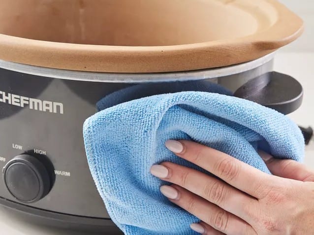 تحتوي أدوات الطهي البطيء على وحدة تسخين خارجية لا يجب غمرها في الماء أبداً. لـ تنظيف هذا الجزء، يجب فصل الجهاز عن الكهرباء تماماً أولاً. بعد ذلك، يُمسح الجزء الخارجي (الجسم الأساسي) بقطعة قماش ناعمة مُبللة بمزيج من الماء الدافئ وقليل من الخل الأبيض. الخل يضمن تعقيماً خفيفاً وإزالة لأي بصمات دهنية. يجب التركيز على تنظيف الفراغات حول لوحة التحكم بعناية لتجنب دخول الرطوبة إلى المكونات الكهربائية.