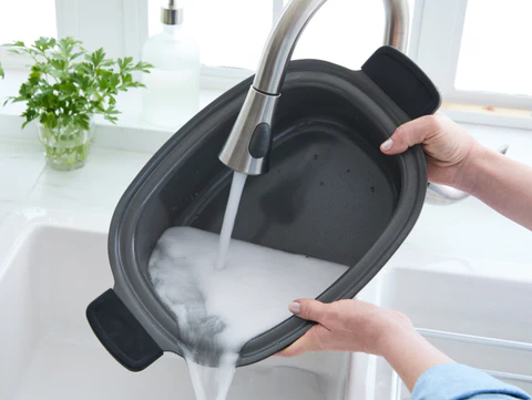 تُعد تقنية النقع هي الأسلوب الأكثر فخامة وعملية لـ تنظيف أدوات الطهي البطيء. يُنصح بملء الوعاء بالماء الساخن فور الانتهاء من الطهي وإضافة القليل من سائل تنظيف الأطباق وملعقة كبيرة من صودا الخبز. تُترك الأداة منقوعة لعدة ساعات أو ليلة كاملة. تعمل صودا الخبز على تفكيك الروابط الدهنية والمواد العضوية المتصلبة، مما يسمح بإزالة الرواسب بسهولة تامة باستخدام إسفنجة ناعمة أو قطعة قماش قطنية، دون الحاجة إلى الفرك الشديد.