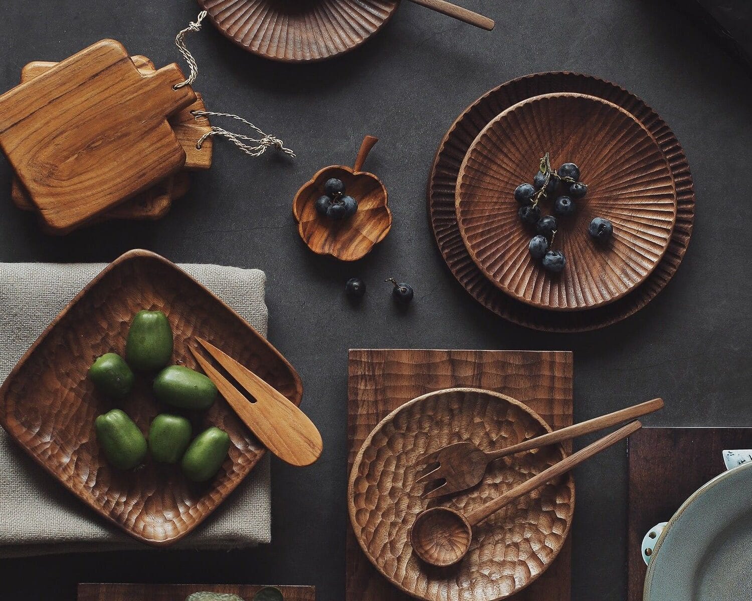 يُعدّ الخشب من أكثر المواد ارتباطًا بالدفء والراحة. ملمسه الطبيعي، وألوانه المتدرجة بين البني الفاتح والعميق، وقدرته على التفاعل مع الضوء، تجعله مثاليًا لتقديم الأطباق الخريفية. سواء كانت ألواح تقديم، صحون خشبية، أو أوعية منحوتة يدويًا، فإنها تُضفي على المائدة طابعًا ريفيًا راقيًا، يُناسب أجواء الموسم.