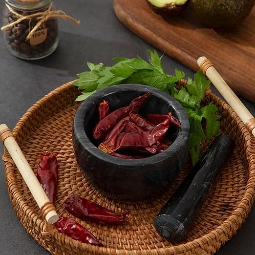 الفقرة الإضافية المتميزة لمطبخكِ تكمن في أدوات “استخلاص النكهات”؛ فكري في امتلاك الهاون الرخامي الثقيل والمبشرات الدقيقة المخصصة للمكونات النادرة. هذه الأدوات تسمح لكِ بطحن التوابل الطازجة أو بشر القشور العطرية والكمأة في لحظتها، مما يملأ مطبخكِ بعبيرٍ ساحر يمهد الطريق لتجربة التذوق. إن استخدام هذه الأدوات اليدوية الفاخرة يضيف بُعداً حسياً وعمقاً للنكهات لا يمكن للآلات الحديثة محاكاته، ويجعل من إعداد الطعام طقساً يجمع بين العلم والفن.