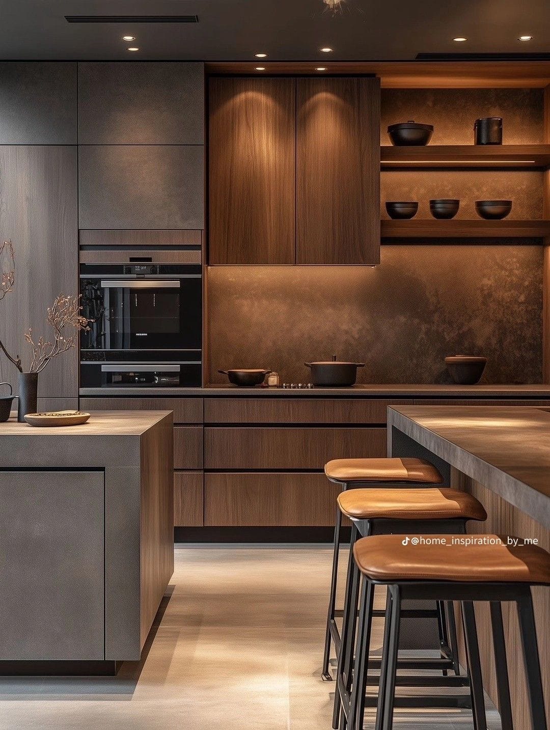 تُظهرُ مطابخ مودرن خشبية بصورة أكثر تميّزًا عند اعتماد إضاءة دافئة تتناسب مع طبيعة الخشب. يساهمُ هذا الاختيار في خلق بيئة مريحة تعكسُ إحساسًا بالاستقرار والدفء داخل المساحة اليومية.