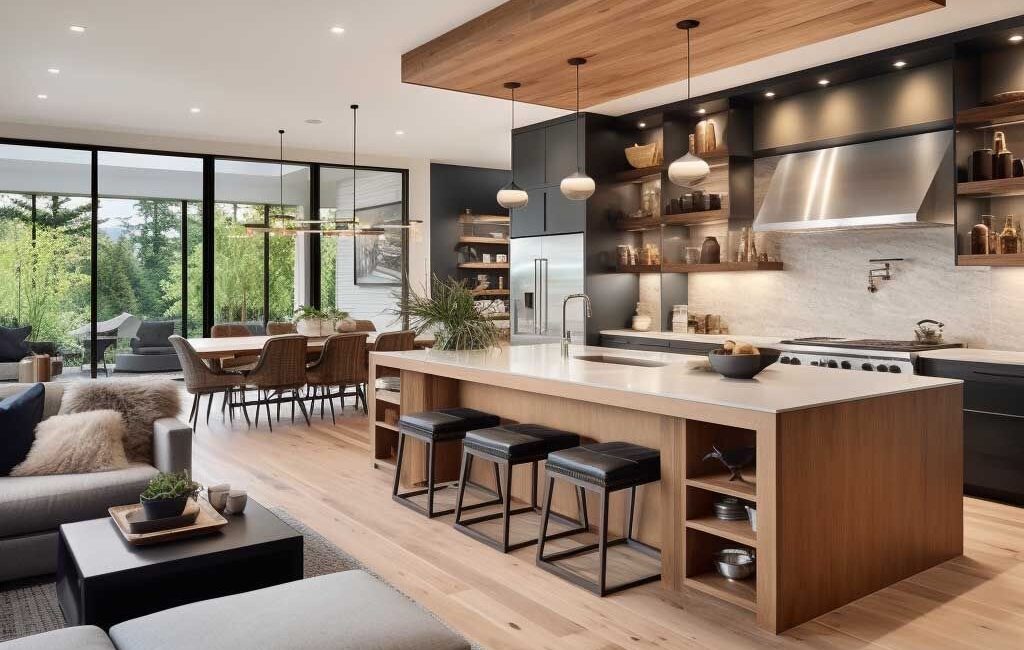 حين تعتمدين تصاميم مطابخ مفتوحة على الصالة، تُتاح لكِ فرصة التواصل بسهولة مع أفراد العائلة أو الضيوف أثناء الطهي أو التحضير. ما يعني أنّكِ لن تبقي معزولةً خلف الجدران، بل تتحكّمين بالمطبخ وتشاركين اللحظة ذاتها في الصالة. ما يجعل الأجواء أكثر حميمية ويُعزّز الترابط الأسري.