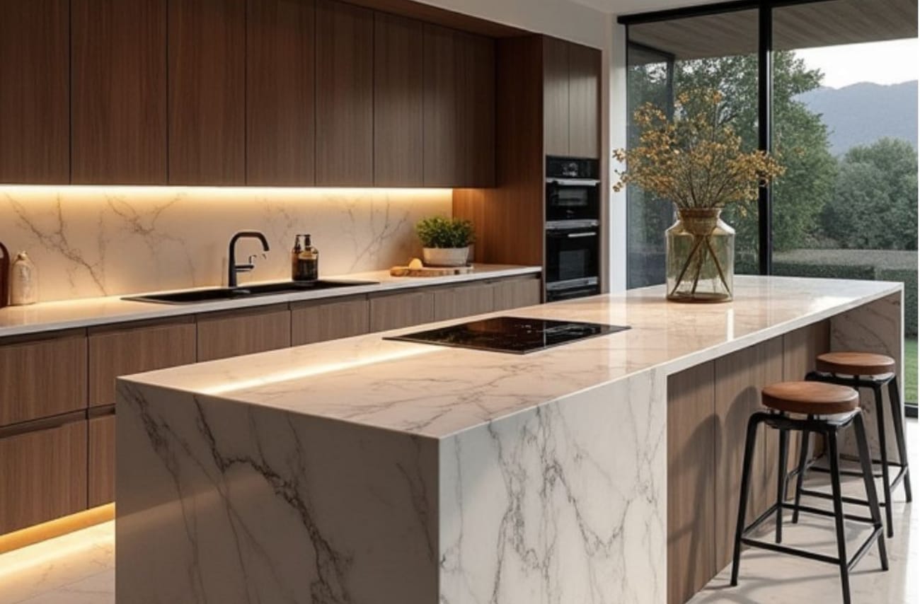 تعتمد مطابخ بألوان ترابية دافئة في جوهرها على المواد الطبيعية التي تعكس روح الأرض. الخشب غير اللامع مثلًا يضيف لمسة أصيلة ويمنح المكان دفئًا حسيًا يصعب مقاومته. أما الرخام والكوارتز بدرجات بيضاء أو رمادية فاتحة، فيُحدثان توازنًا رائعًا أمام الألوان الترابية ويكملان المشهد بانسجام أنيق.
