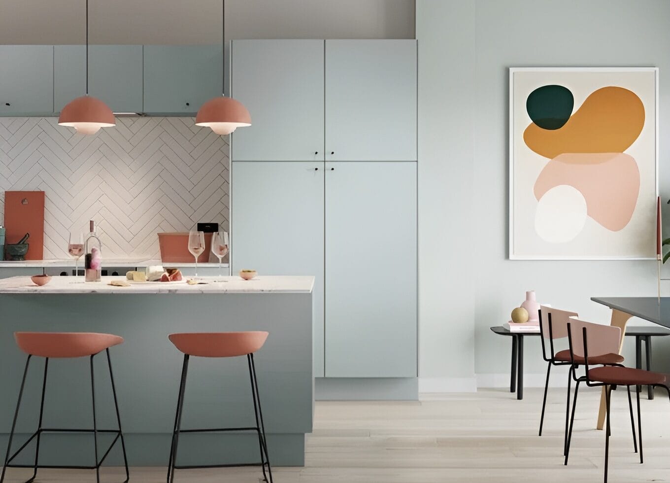 اختاري أكسسوارات صغيرة كعلب البهارات، والأواني الخزفية، أو حتى أدوات المائدة بألوان متنوعة. وزّعيها في أنحاء المطبخ لتخلقي انسجامًا لونيًّا جذّابًا.