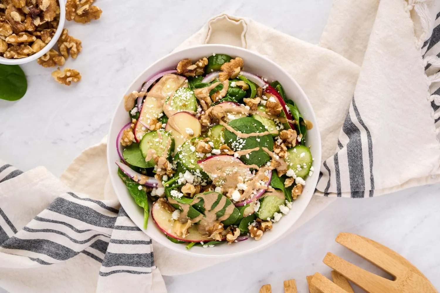 سلطة كريمية بخطوط خريفية: التفاح والسبانخ في مزيج مثالي