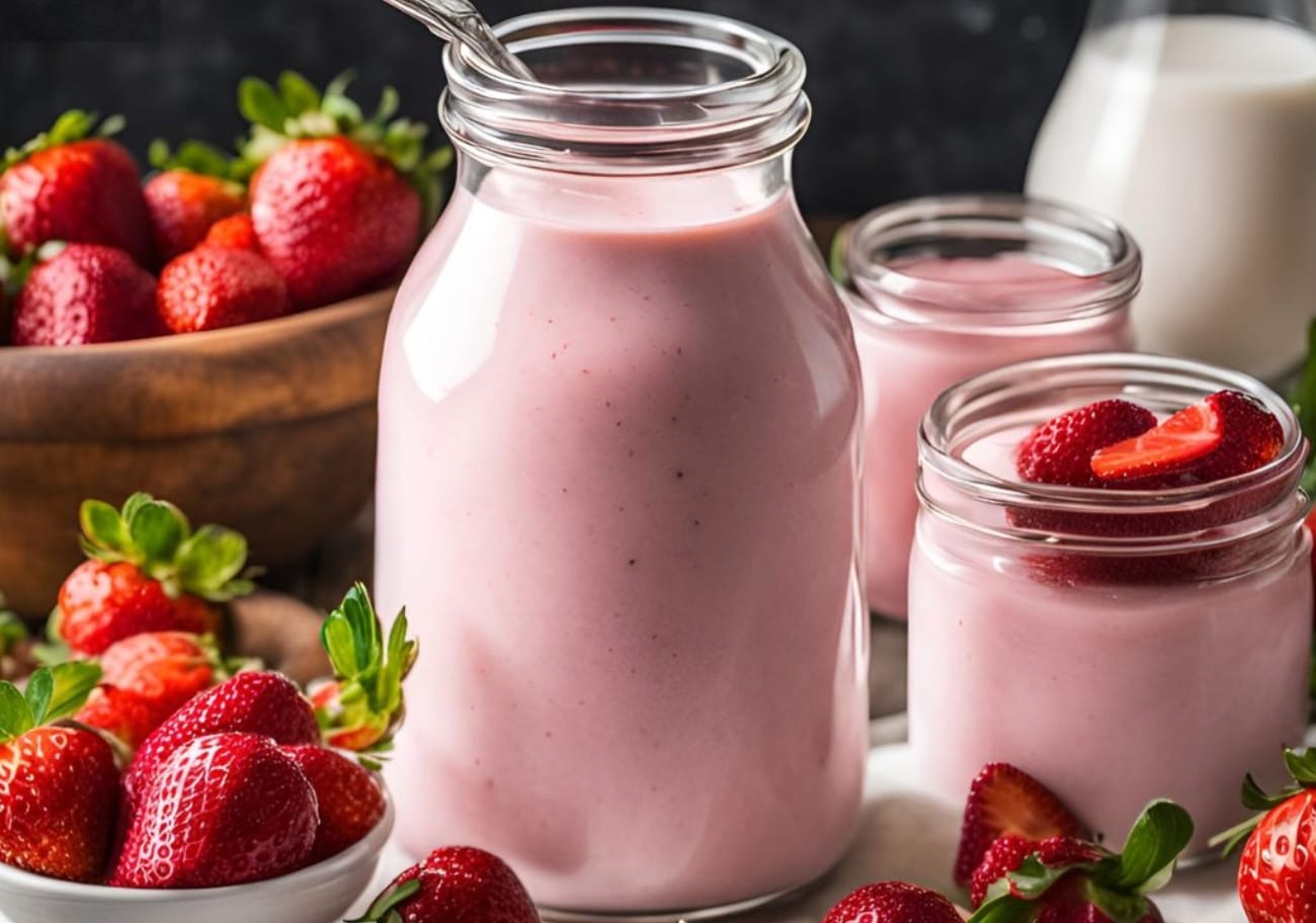 - قدّمي مشروب الزبادي والفراولة البارد في أكواب زجاجية مزيّنة بقطع فراولة طازجة.