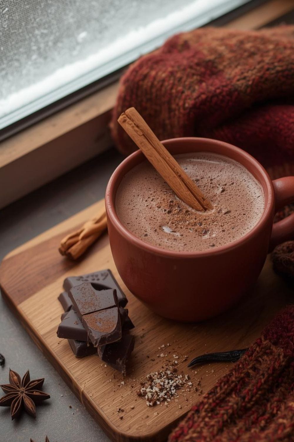 • يُخفق الكاكاو والقرفة مع الحليب حتى يتجانس الخليط تمامًا.