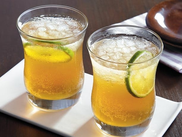 - عند التقديم، يُسكب الشراب في أكواب نصفها مملوء بالثلج، ثم تُضاف المياه الغازية برفق لتوليد الفوّرات الطبيعية.
