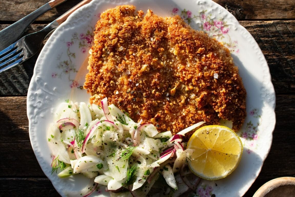 في صباحٍ خريفي تتسلّل فيه أشعة الشمس بخفّة وتهمس الأرض بألوانها الذهبية، تنبثق وصفةٌ تُجسّد روح الفصل: دجاجٌ مقرمش مغطّى بالجوز، يضرب على وتر المذاق الحلو والمالح، مترافقًا مع سلطة شبت منعشة تُعيد الحيوية إلى كل لقمة. إنها تجربة طهي تجمع بين الفخامة المنزلية والبساطة المدروسة، لتقديم وجبة تُكرّر، لتُعاش، وسط دفء موسمي يلفّ الحواس.