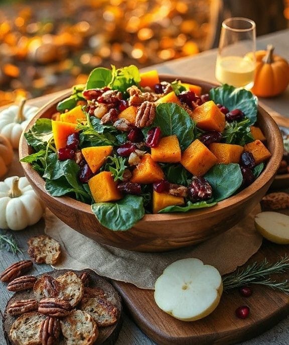 تحمل سلطة حصاد الخريف مع جوز البيكان ذلك المزيج الأخّاذ الذي يجمع بين اللمسة الموسمية العميقة ونضارة المكونات الطازجة. في هذا الطبق، تتداخل حلاوة الفاكهة مع قرمشة البيكان وتوازنها الخضار الخريفية الغنية، لتقدّم سلطة تُشعر من يتذوقها بأن الموسم قد دخل المطبخ بكل تفاصيله الدافئة. إنها سلطة تحتفي بألوان الخريف ونكهاته، وتحوّل المكوّنات البسيطة إلى تجربة راقية تُلهم أي مائدة يومية أو ضيافة فاخرة.