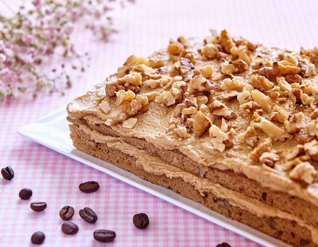 كعكة القهوة مع كريمة الكراميل والجوز هي مزيج فاخر بين نفحات القهوة الدافئة، الحلاوة الفائقة للكراميل، وقرمشة الجوز الغنية. هذه الكعكة ليست مجرد تحلية، بل تجربة كاملة تُمتع الحواس، وتُعد خيارًا مثاليًا للولائم والمناسبات الخاصة حينما ترغب بتقديم شيء مميز.