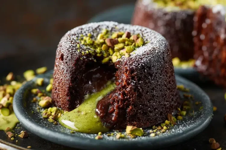 كيك لافا بالشوكولاتة الغنية ونكهة الفستق