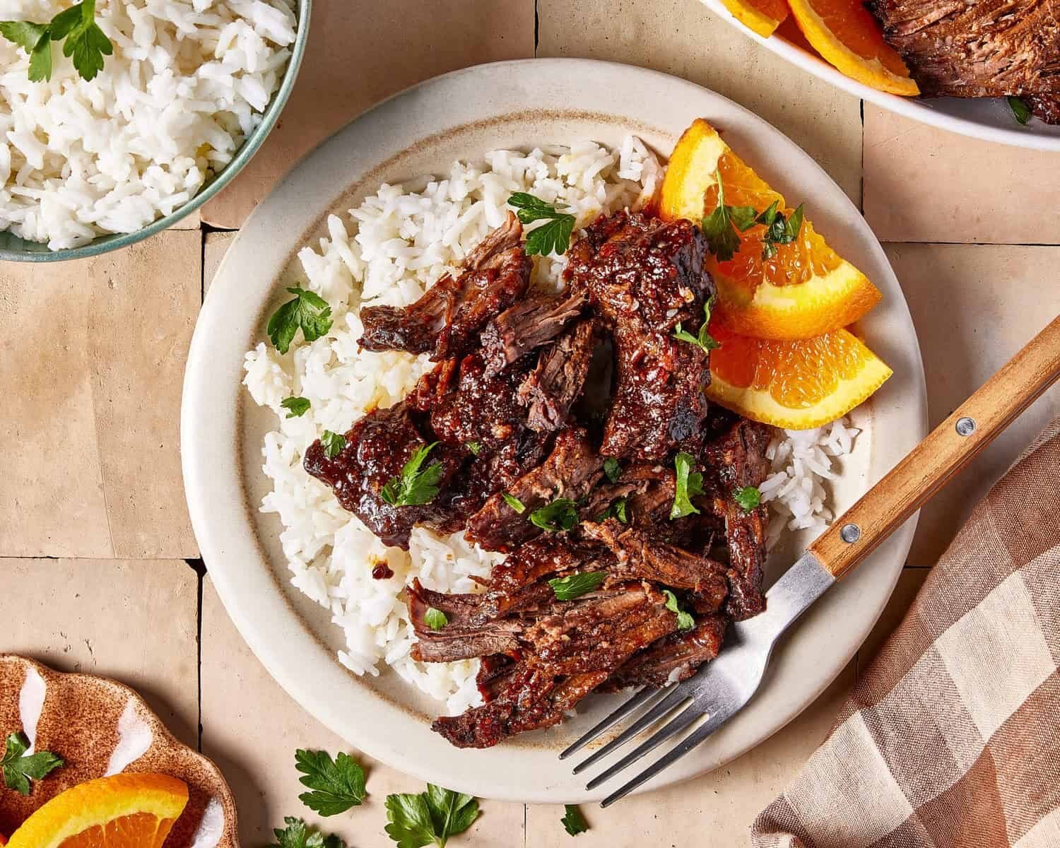 - غطي القدر بإحكام واتركي اللحم يطهى على نار هادئة جداً لعدة ساعات حتى يصبح طرياً تماماً وينفصل عن بعضه بسهولة.