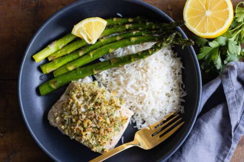 فيليه Mahi Mahi بفُتات اللوز المقرمش وجبن البارميزان